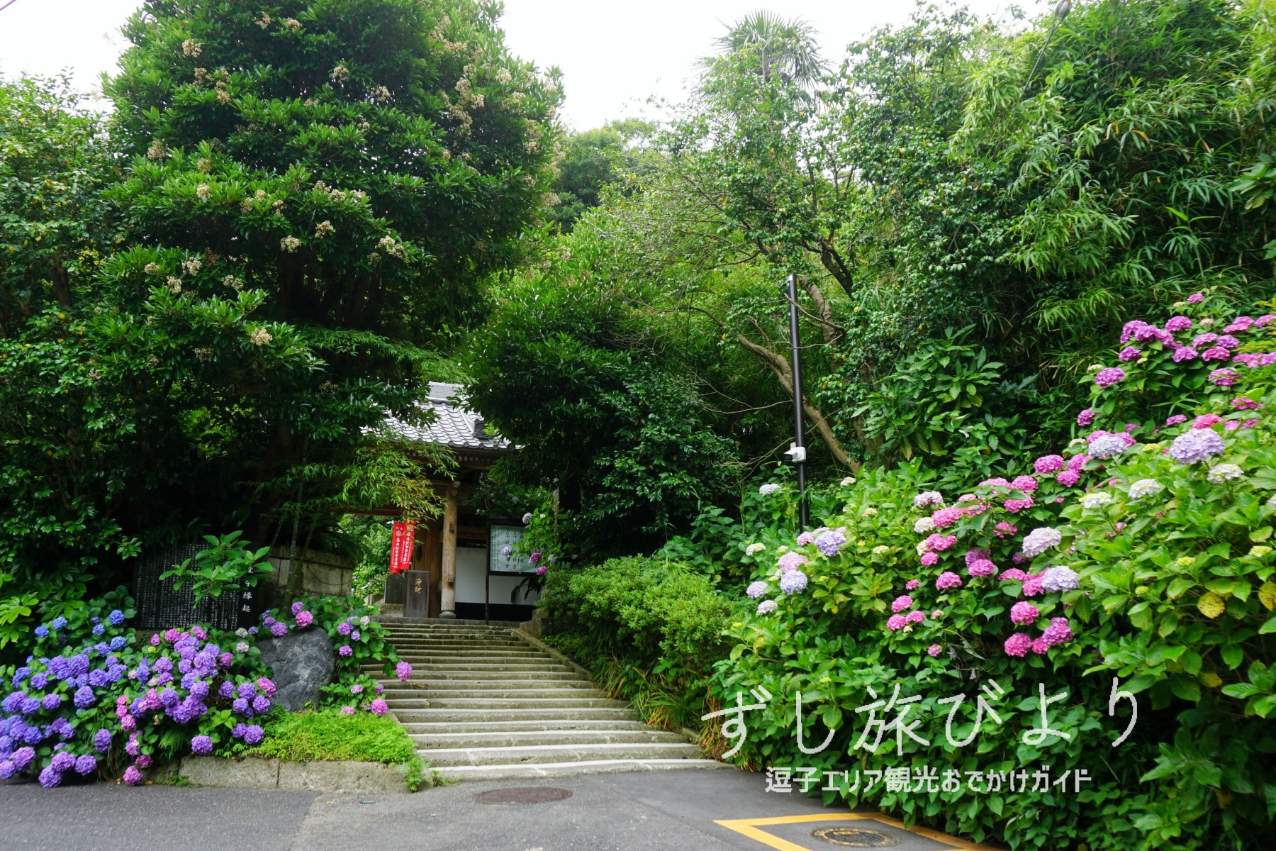 • 初夏の境内を彩る、逗子のあじさいの名所。